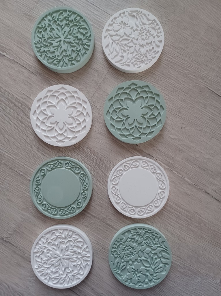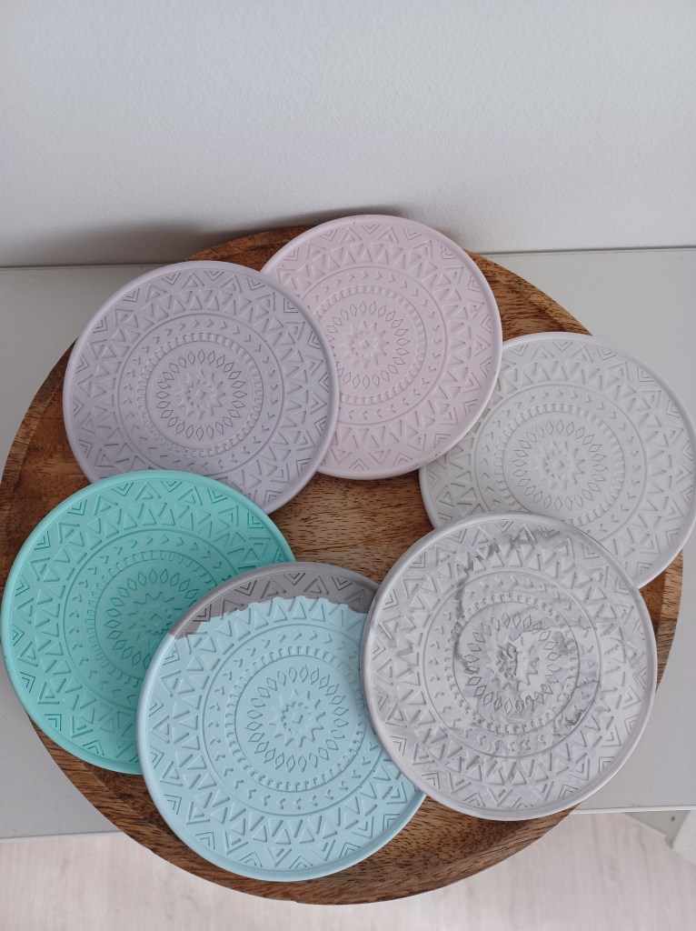 Meine Produkte sind aus hochwertiger Reliefmasse hergestellt und werden versiegelt. Dadurch sind sie wasserabweisend, aber nicht wasserfest. Die Reinigung erfolgt am besten mit einem leicht angefeuchteten Tuch. Nicht spülmaschinengeeignet.